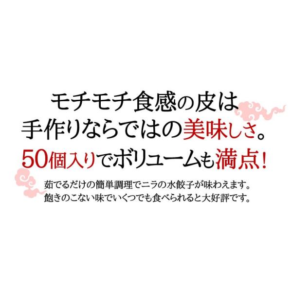 ニラがたっぷり、モチモチの皮が美味しい手作り水餃子。