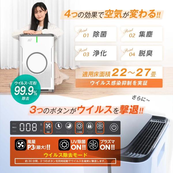 空気清浄機 空気清浄器 ニオイ 花粉 脱臭 ペット ウイルス カビ 子供部屋 AG+ 銀イオン 約22〜27畳用 ホコリ 日本公共機関検証済み nsp-x2