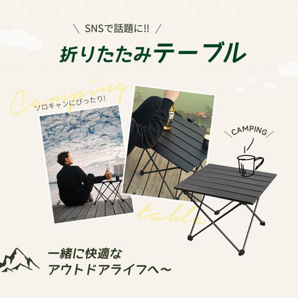 キャンプ キャンプテーブル アウトドア テーブル アルミ ロールテーブル コンパクト 超軽量 アウトドア 運動会 BBQ ハイキング ビーチ 収納袋付き ブラック