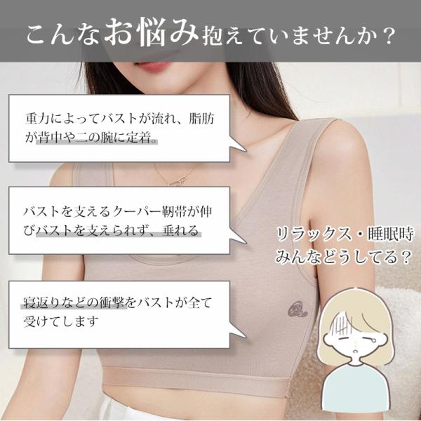 1日中使えるバストケアブラ! ノンワイヤーナイトブラ 柔らかい 補正下着 肩ひも太い 脇高 横流れ 防止 楽 夜