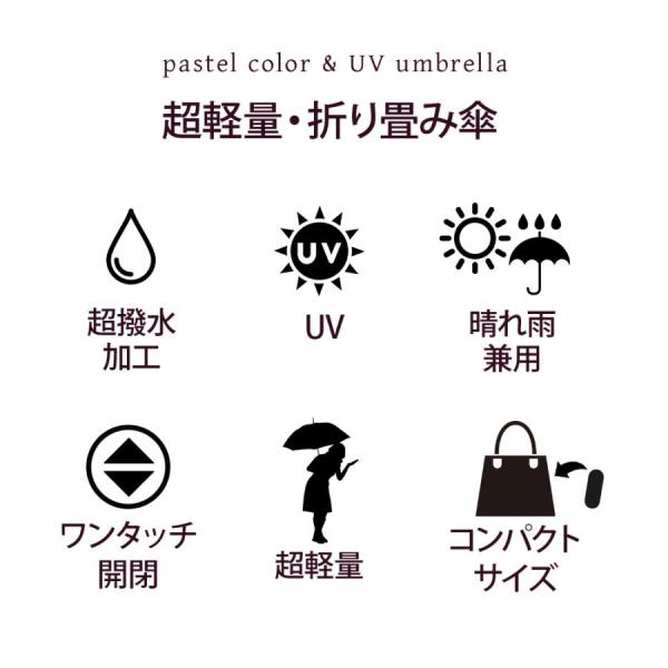 【デザインと実用性を配慮 上品なおりたたみ傘】 おりたたみ傘は上品な切替え配色のデザインと実用性を配慮し、憂鬱な気分を上げてくれる9種類を用意しました。お求めいただき易いプライスで、女性はもちろん、男性、女の子や子供のプレゼントにおすすめ。重量は340gで、折り畳むとたった28cmです。コンパクトで軽量な傘なので、カバンに入れても重さ全然気つかれしなくて、持ち歩きにとても便利です。