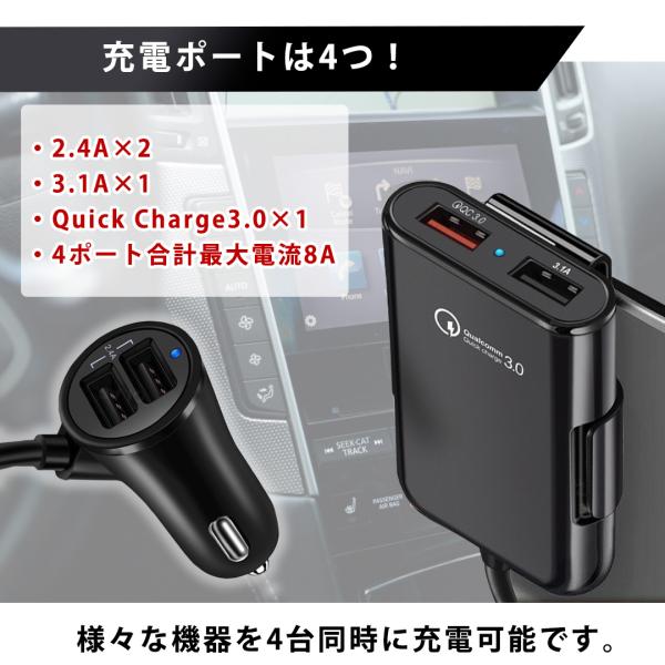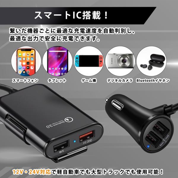 シガーソケット usb カーチャージャー 車 車載 充電器 延長 iphone 急速充電 QC3.0 コンセント 増設