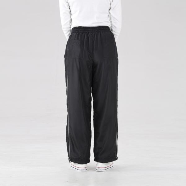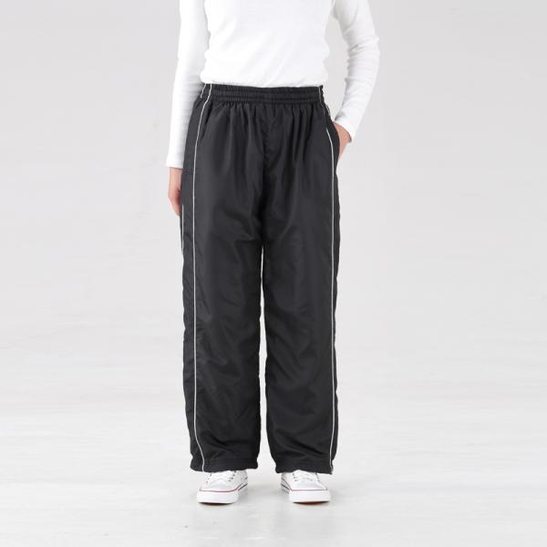柔らかなポリエステル表生地と、裏地にフリース生地を合わせた暖かなパンツです。