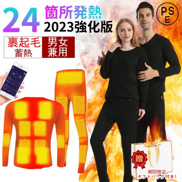 電熱インナー 日本製ヒーター 上下セットorトップスorパンツ選択可 14/22/24箇所発熱 3段階温度 USB給電 裏起毛 防寒着 インナーパンツ 速暖 防寒対策