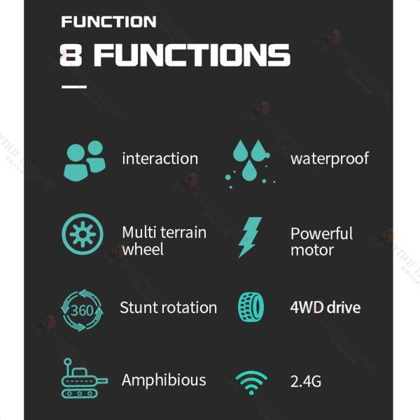 両面走行特技だけでなく、ジャンプと360度回転などスタント動作もできます。4WD搭載の2つの強力なモーターを搭載し、速くて最大速度の 分間100メートルで走行できます。オフロードの設計構造は、陸地、ビーチ、湿原、または草地を簡単に突破!