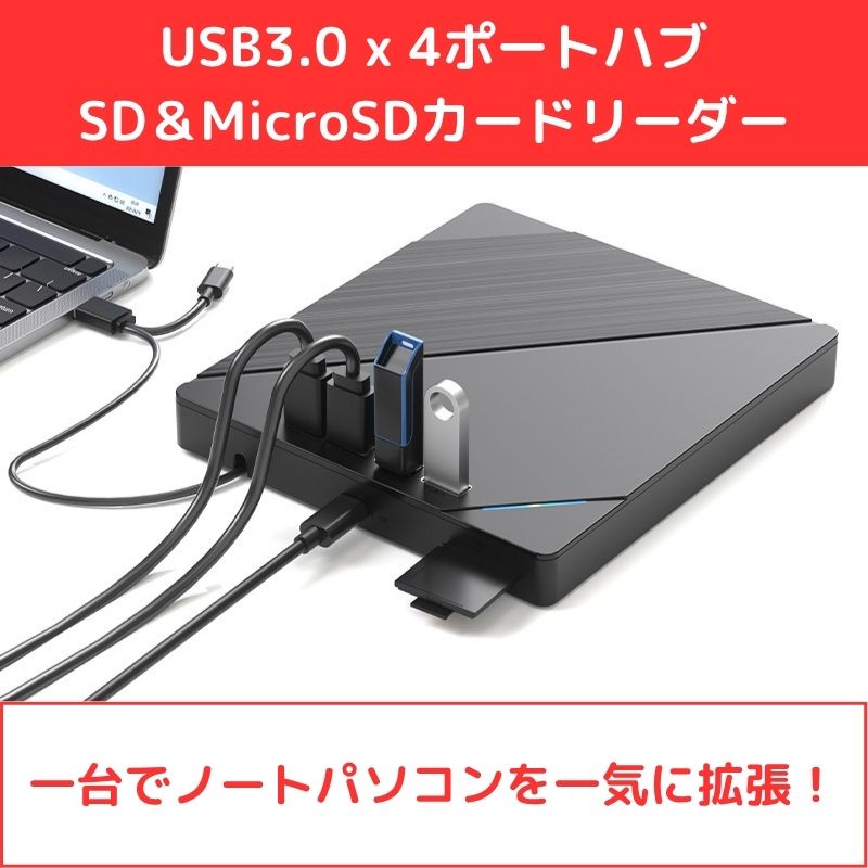 USBハブ&カードリーダー ポータブルDVDマルチドライブ