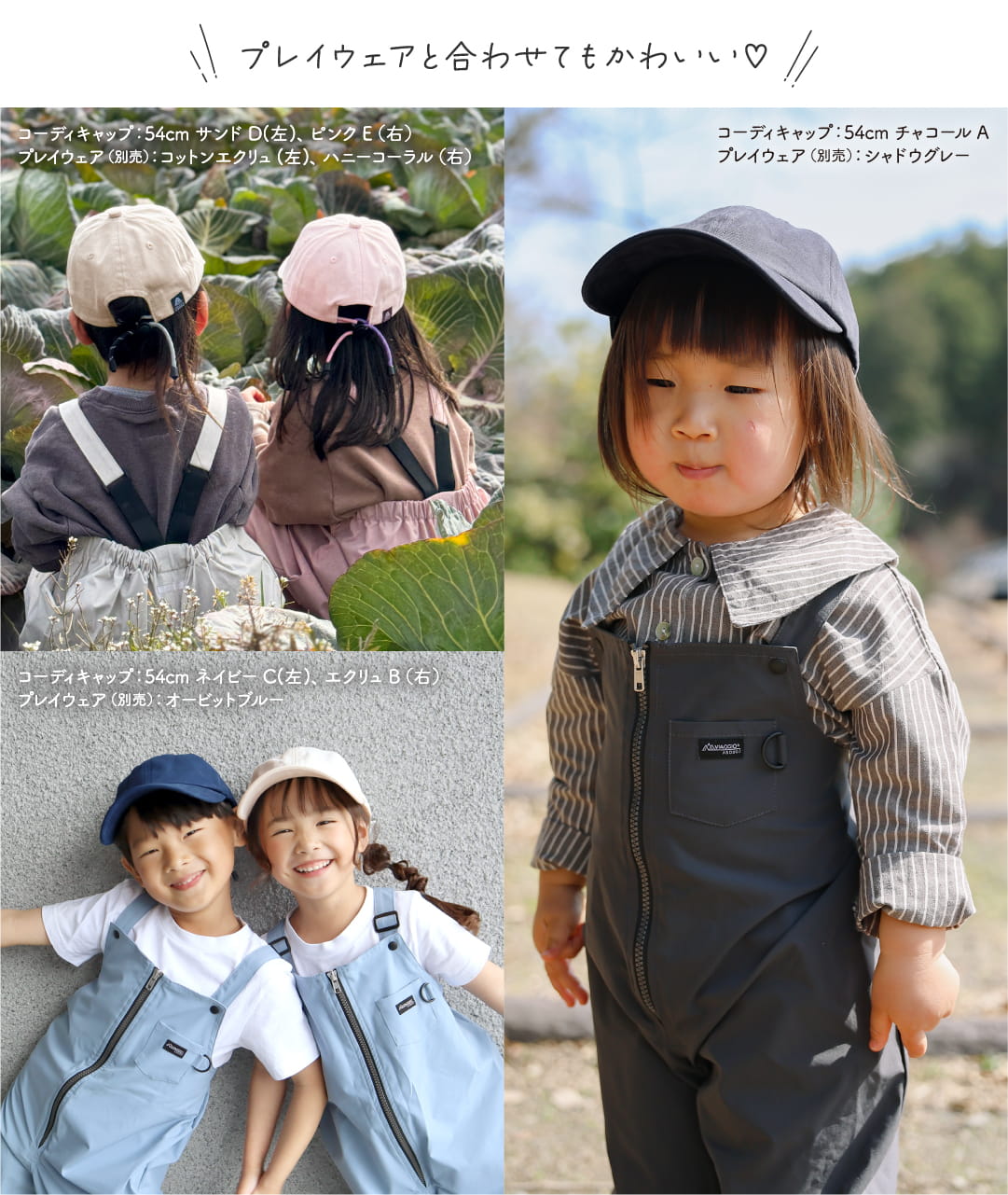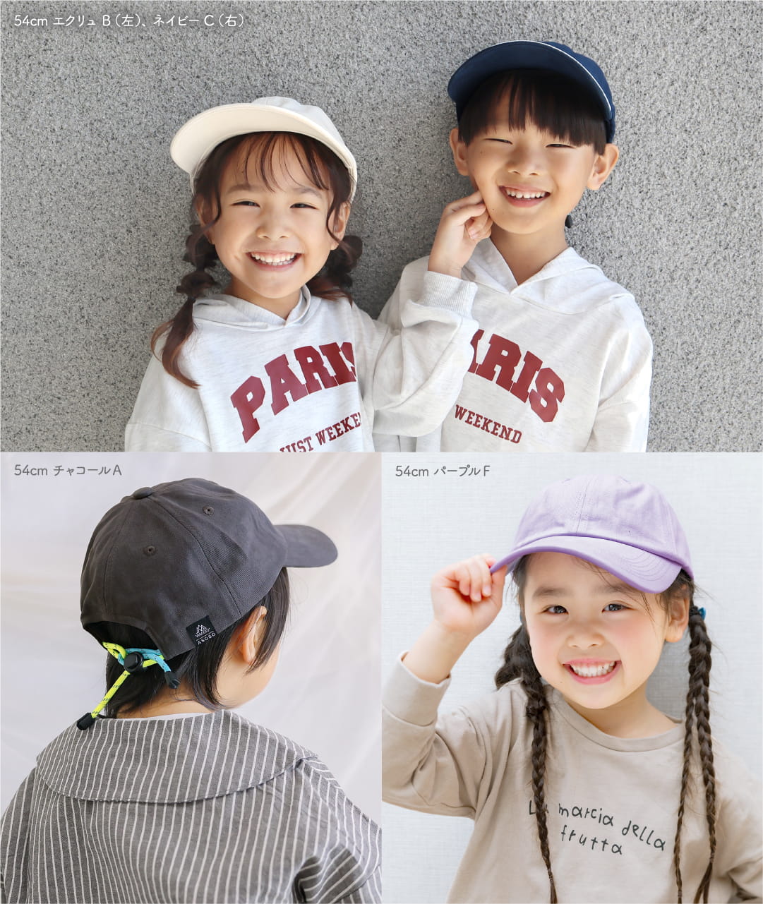 キッズ 帽子 子供 キャップ 54cm 58cm サイズ調節可能 くすみカラー 紫外線対策 日除け 男の子 女の子 手洗いOK コーディキャップ Viaggio+ ASOBO