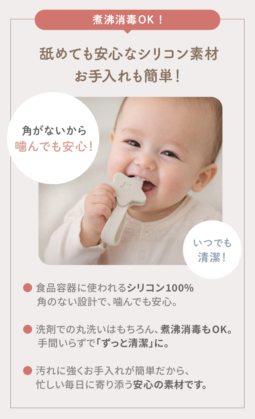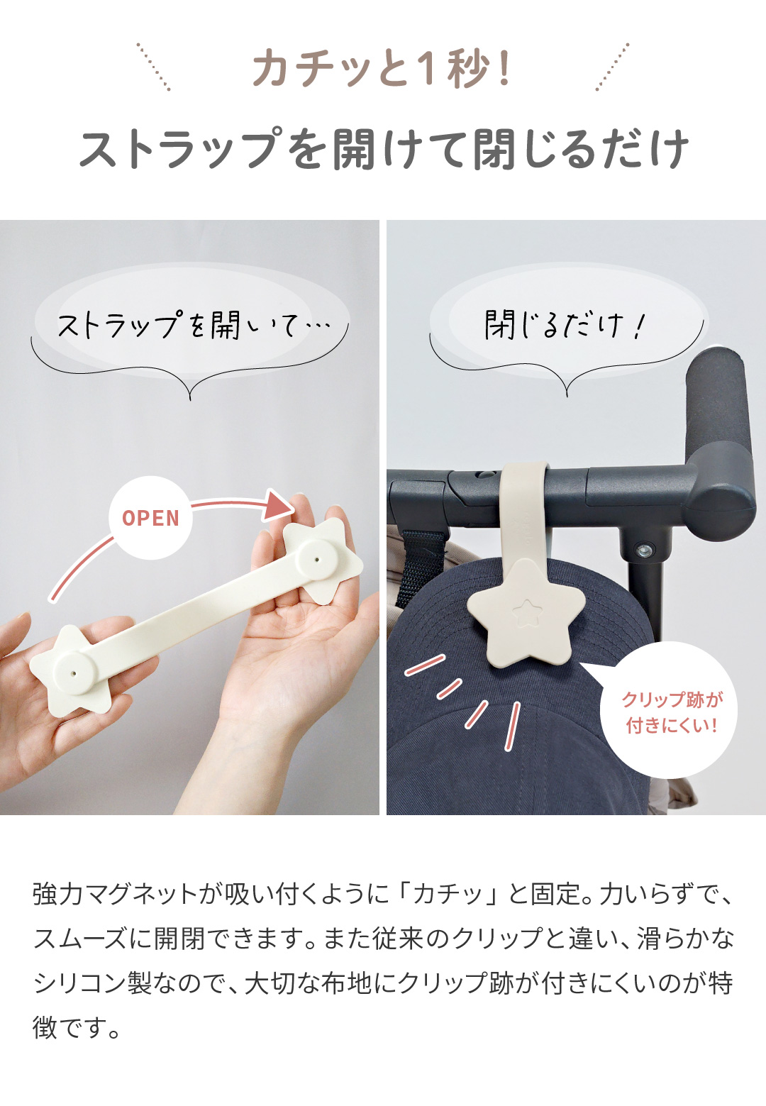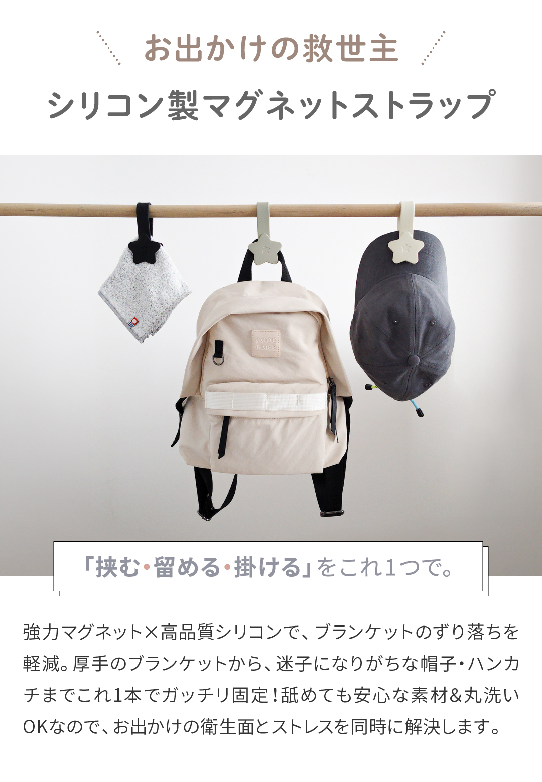 厚手のブランケットから、迷子になりがちな帽子・ハンカチまでこれ1本でガッチリ固定!舐めても安心な素材&丸洗いOKなので、お出かけの衛生面とストレスを同時に解決します。