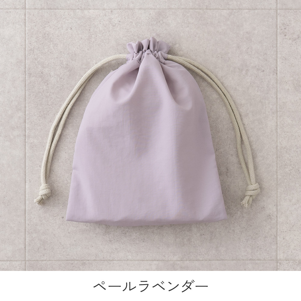 コップ入れにちょうどいい小さめサイズの巾着袋</b><br>約24×19cmの、小さめサイズの巾着袋。コップやカトラリー、給食用のランチョンマットを入れるのにちょうどいいサイズ感です。