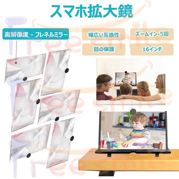 スマホ 拡大鏡 スクリーンアンプ 16インチ スタンド 折りたたみ式 スマホ拡大鏡スタンド携帯便利 軽量 目の保護 疲労軽減 360°自由回転 多機能調節可能 ルーペ