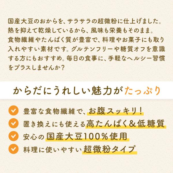 おからパウダー500g 超微粉 国内加工 送料無料 150メッシュ チャック付き ダイエット 健康