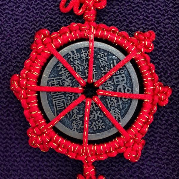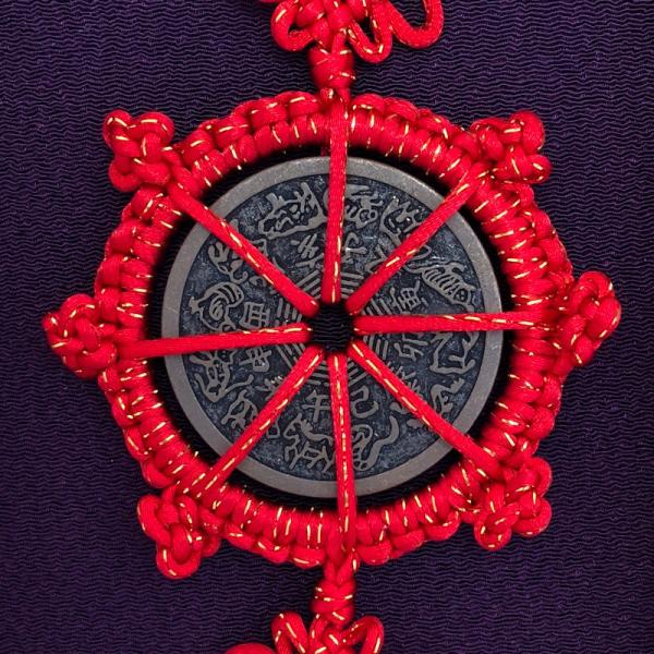 表は「方角や時間を表す十二支」と「魔除けの八卦」、裏は「魔除けの護符」が刻まれています。