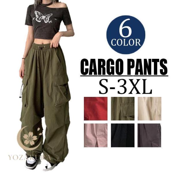カーゴパンツ レディース ミリタリー ワイドパンツ ウエストゴム ヒップホップ ダンス ファッション カジュアル おしゃれ ゆったり 美シルエット 夏