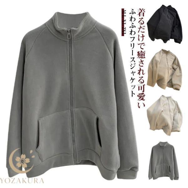 ボア ジャケット レディース フリース カーディガン アウター 秋 冬 ジップアップ 無地 軽量 あったか シンプル 防寒 あったか スタンドカラー