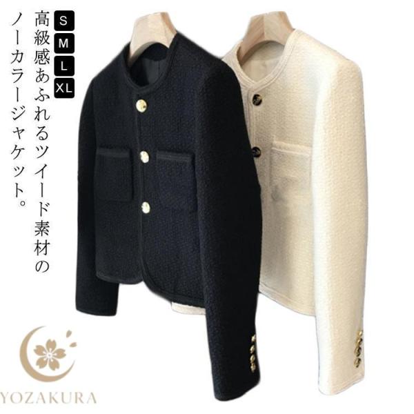 レディース ツイード ジャケット 春 秋 ノーカラー ジャケット 母 韓国 長袖 アウター 春服 入学式 卒業式 入園式 卒園式 母親 ママ スーツ