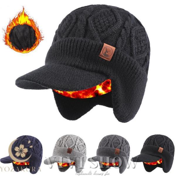 ニット帽 メンズ 耳当て つば付き 帽子 厚手 裏ボア 防寒 暖か キャスケット ニット 秋 冬 男女兼用 キャップ おしゃれ カジュアル 毛糸 男性