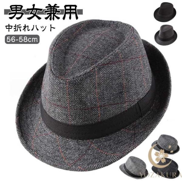中折れハット メンズ レデイース ラシャ 帽子 中折れ帽 春 秋 冬 レザー チェック柄 カラーバリー シンプルメルトン中折れ ハット 中折れ ハット