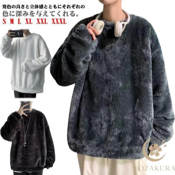 フリース 極暖 ボア トレーナー トップス メンズ 大きいサイズ 長袖 無地 ルームウェア 秋服 冬服 厚手 冬 暖かい あったか 秋 秋冬 Uネック