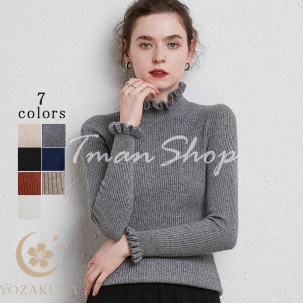 ニットセーター ハイネックニットセーター 長袖 レディース フリル かわいい リブ タートルネック トップス セーター 伸縮性 暖か 秋 秋冬 新作