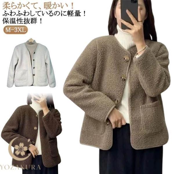 春 レディース 秋 ブルゾン 羽織り 上着 フリースジャケット アウター ブルゾン ミディアム丈 長袖 冬 ボア ポケット オーバーサイズ お洒落 フ