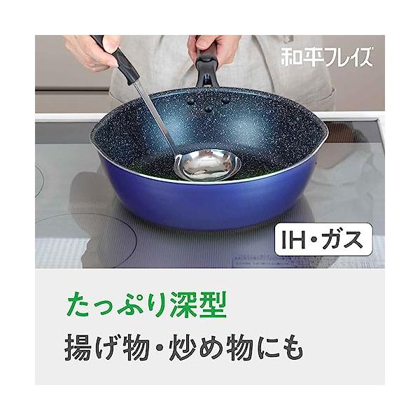 和平フレイズ 深型フライパン 24cm ブルー IH・ガス対応 鍋のように扱える 焼く 茹でる 煮る 揚げる メガフッカNEO RB-2153