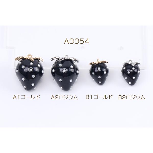 【即日可能】いちごチャーム 樹脂製イチゴチャーム かわいいフルーツチャーム 苺 パール付き 2サイズ ブラック(2ヶ)
