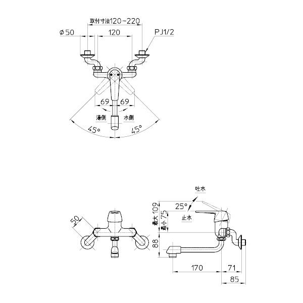 SANEI 壁付シングルレバー混合栓 一般地用 CK1700D-4U-13 水栓金具 キッチン用 キッチン水栓 三栄水栓