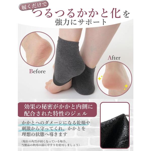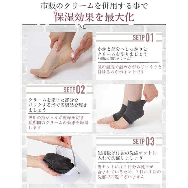 かかとケア かかと ソックス 靴下 つるつる 潤い 3足セット かかと保護 かかとサポーター ひび割れ対策 角質ケア ツルツル 美脚 保湿ジェル配合 PKT2-2F