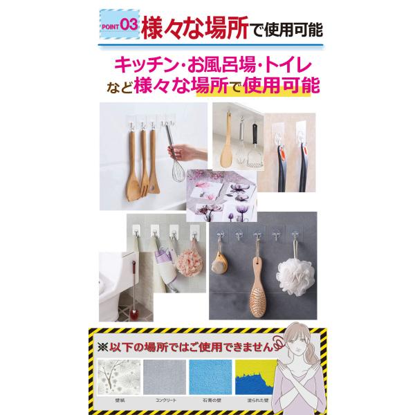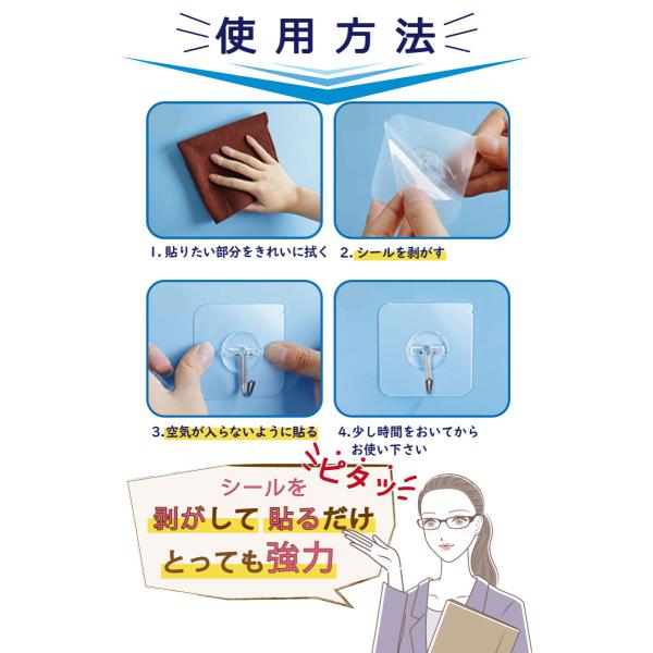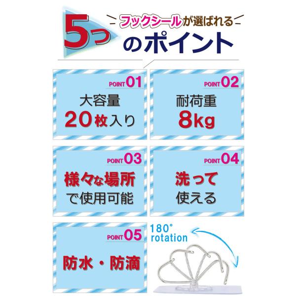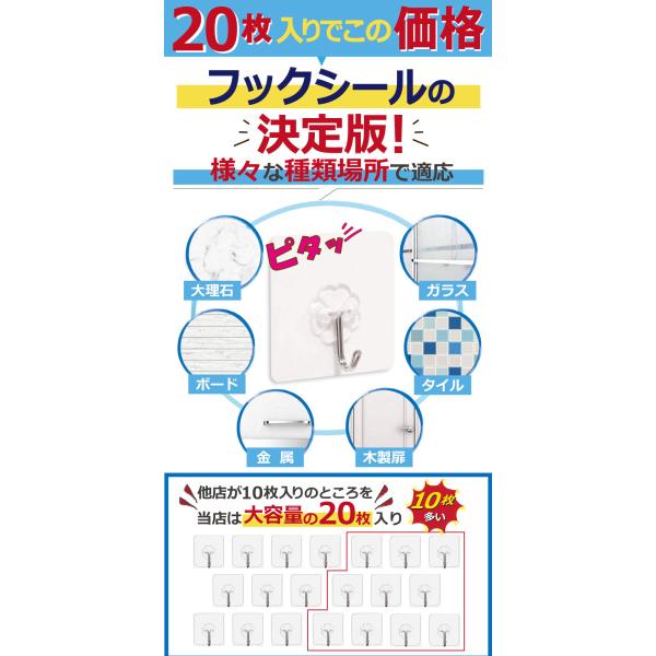壁 フック フックシール 20個入り 超強力 壁 透明タイプ 耐荷重8kg はがせる PKT3-2F