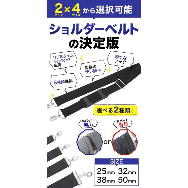 ショルダーストラップ ショルダーベルト 単品 パッド 25mm 32mm 38mm 50mm