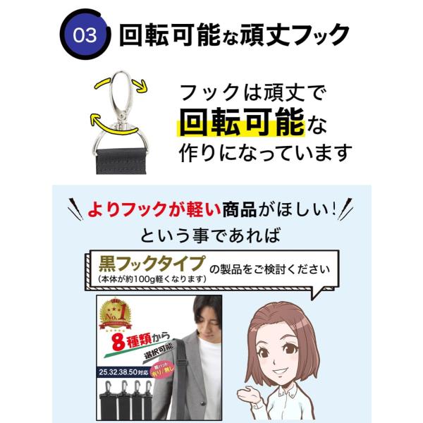 ショルダーストラップ ショルダーベルト 金属フック 単品 パッド 25mm 32mm 38mm 50mm ビジネス バッグ ベルト PKT3-3F