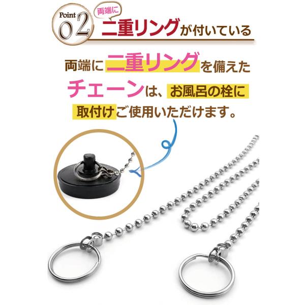 風呂 チェーン お風呂の栓 風呂せん 両端に二重リングを備えた風呂 PKT2-4F