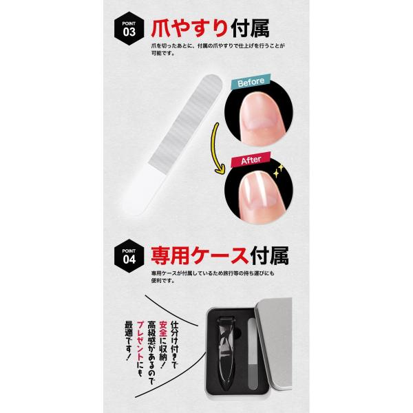 爪切り ケース付き つめきり 飛び散らない プラス 微粒やすり