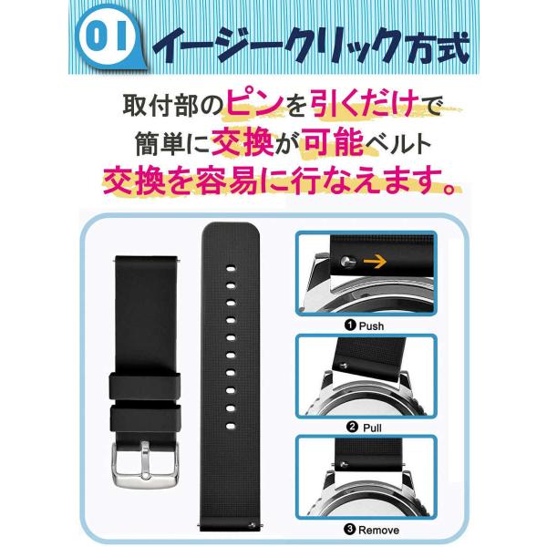 スマートウォッチ ベルト バンド シリコン 14mm 16mm 18mm 20mm 22mm 24mm イージークリック PKT1-4F