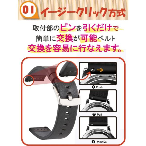 スマートウォッチ ベルト バンド 革 18mm 20mm 22mm 24mm イージークリック PKT1-4F