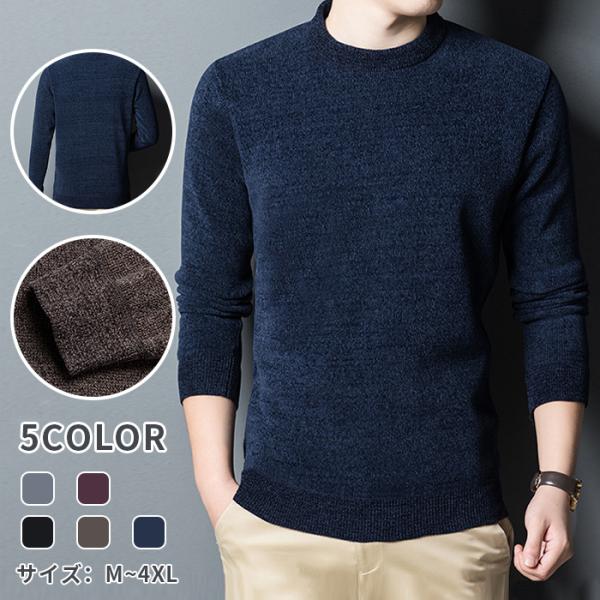 ニット メンズ セーター 長袖 裏起毛トップス 男性 クルーネック 秋服 冬服 暖かい 無地 シンプル