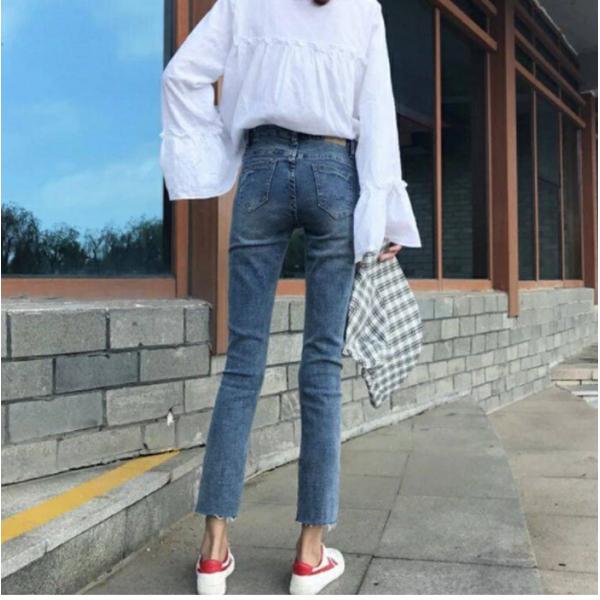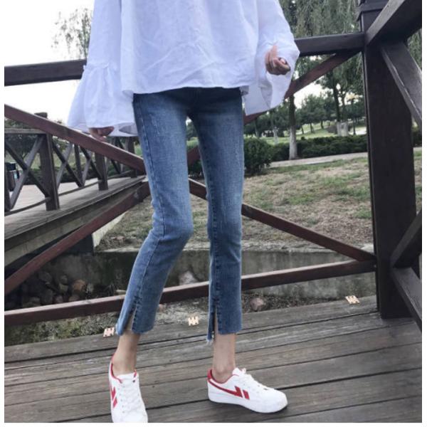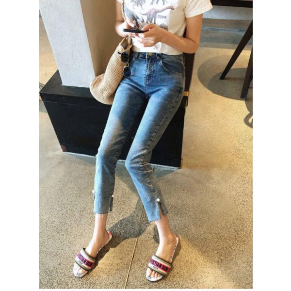デニム スキニー ジーンズ ストレッチ レディース パンツ ハイウエスト 9分丈 切りっぱなし