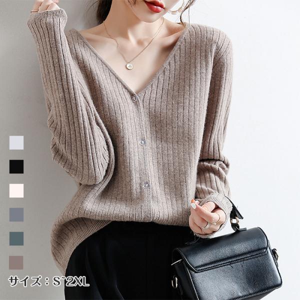 トップス レディース リブニット カーディガン ニット 長袖 セーター 春 秋 冬 羽織 シンプル
