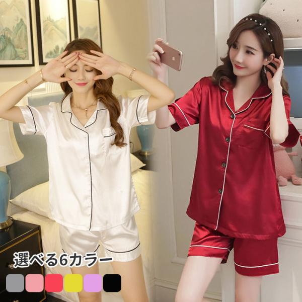 パジャマ ルームウェア レディース 上下セット 半袖 半ズボン 薄手 サテン 夏 やわらか 部屋着