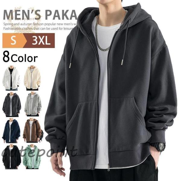 スウェット パーカー メンズ 薄手 無地 長袖 パーカ フルジップ ジップ ジップパーカー ビッグパーカー ス フード付き