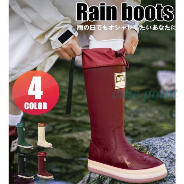 レインブーツ レディース ラバーブーツ ロング 折りたたみ レインシューズ 軽量 幅広 通気性 長靴 雨靴 完全防水 おしゃれ ガーデニング 釣り
