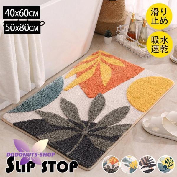 玄関マット 大きめ おしゃれ 室内 屋内40×60cm 50×80cm 洗える 滑り止め 北欧 リーフ オリジナル マット 速乾 吸水