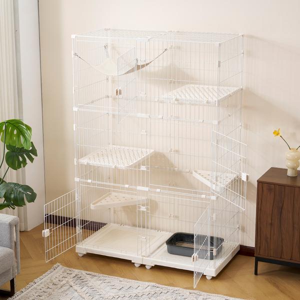 【掃除しやすいトレー】猫 ケージ キャットケージ 3段 幅広設計 引き出しトレー 自由組み合わせ 多頭飼い 猫ドア キャットハウス ペット おしゃれ