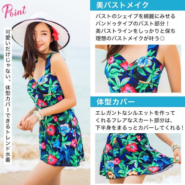 水着 レディース ワンピース 体型カバー 花柄 タンキニ ママ