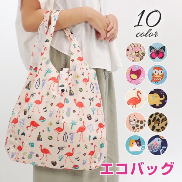 エコバッグ 折りたたみ コンパクト レジ袋 軽量 大 コンビニ ミニ収納バッグ付き アニマル 柄 おしゃれ 買い物バッグ かわいい 【ゆうパケットのみ送料無料】