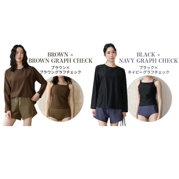 クーポン利用で4,980円 水着 レディース 体型カバー タンキニ シンプル ラッシュガード 長袖シャツ ショートパンツ 4点セット ビキニ セパレート 一部予約商品
