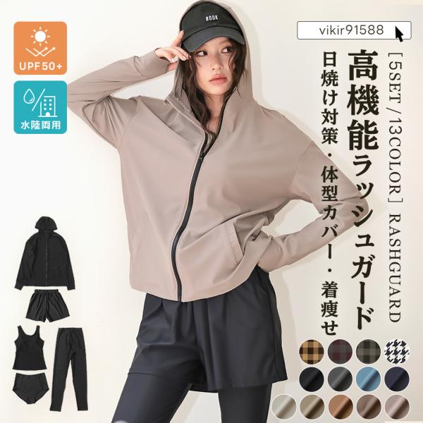 クーポン利用で6,900円 水着レディース 体型カバー ラッシュガード uvカット タンキニ水着 5点セット タンキニ ラッシュレギンス