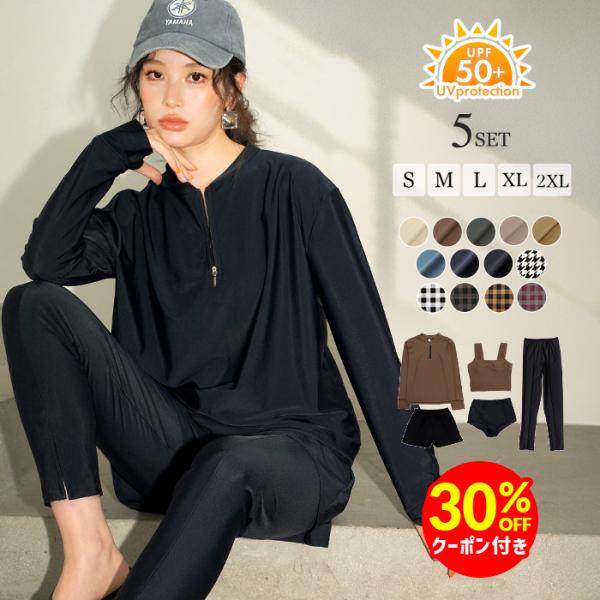 30%OFFクーポン付き 期間限定 水着 レディース 体型カバー タンキニ 長袖シャツ ショートパンツ 4点セット ビキニ セパレート 一部予約商品