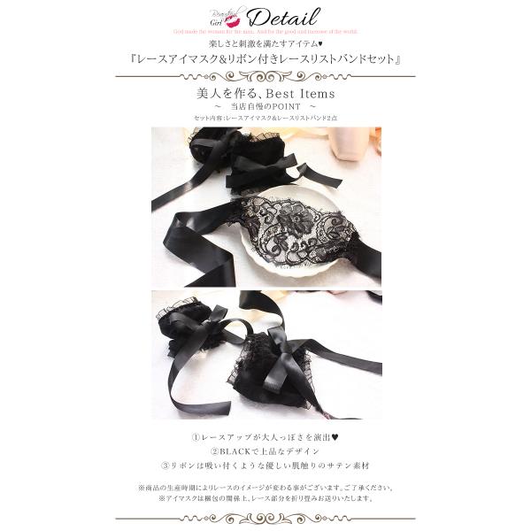 ●アイマスクのレース部分は折りたたんで届きます。着用の際は広げて着用ください。入荷の時期により素材やレースのデザインが予告なく一部変更になる場合がございます。ご了承ください。