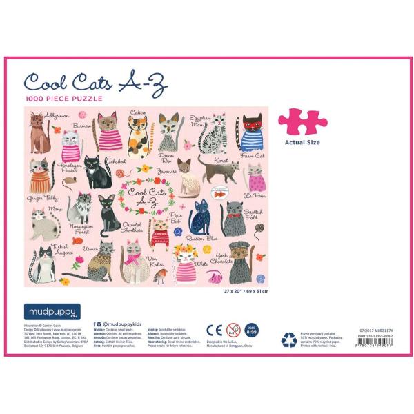 【海外のジグソーパズル】 1000ピース Mudpuppy Cool Cats A-Z 1000 Piece Puzzle 【宅急便:サイズ80】